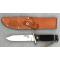 Superbe couteau de chasse de type allemand après-guerre, POST WW2, Safari. La poignée est en plastique noir strié, pas de jeu avec un pins de fleur de lys doré sur fond rouge incrusté. Restes de marquages sur la lame : '' SAFARI ROSTFREI ''. La lame est en bel état. Le fourreau est en cuire robuste, avec son bouton d'attache. Il s'agit d'un très beau couteau de chasse, totalement original, il aurait entre 40-50 ans (à vérifier).
