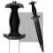 Très belle reproduction fabriquée sur base de la dague Suisse du XIIIième siècle. Dès le XIIIième siècle, il existe en Suisse, un poignard caractéristique, dont la poignée est formée d'une garde et d'un pommeau en croissant de part et d'autre d'une forte fusée. La lame est large, à deux tranchants autour d'une arête médiane. Le fourreau, jusqu'au début du XVIième siècle, est formé de deux lattes de bois, recouvertes de cuir.