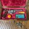 Arme dans un coffret bois avec sa clef intérieur velour rouge sang avec une boite métallique avec 50 cartouches 7 mm broche d'origine, petit tournevis bois , pot à graisse en bois