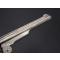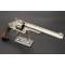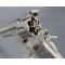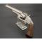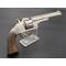 Remarquable revolver S&W second modèle American calibre 44 simple action N°10758 dans sa finition d'origine nickelée avec belle patine grise localisée sans aucun oxydation, adresse et brevets sur la bande supérieur du canon bien net sans atténuation, mécanisme fonctionnel sans jeu, toutes pièces au même numéro d'assemblage 457, entre-fer et indexation parfaite, canon long de 8" 20.5cm, rayures brillantes sans usure particulière, superficielles taches sans corrosion, bon cran d'armé et demi armé bien, extraction collective à brisure. Plaquettes de crosse en noyer lisse sans accident. Longueur totale 36cm Arme rare à découvrir en si bel état de conservation, importée des USA dans les année 80's, excellente mécanique et rayures pour le tir à l'arme ancienne.