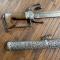FOURREAU A DEUX ANNEAUX DE SUSPENTES EN ARGENT, POMMEAU DE RIVURE EN ARGENT.