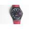 Montre Swatch Barajas, 1992 bracelet en cuir bordeaux mouvement à quartz, réf : GB416 avec boite présentoir en plexiglas et garantie très bon état (pile à changer)