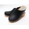 Sabots femme et homme suédois bois et cuir lisse ou mat cuir noir oil