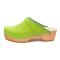 Semelles bois protégées par des patins en caoutchouc. En cas d'usure, vous pouvez les remplacer avant que le bois ne soit entamé : les sabots sont un produit durable. Cette réparation chez votre cordonnier prolongera ainsi la durée de vos sabots.