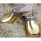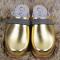 Sabots en bois femme et cuir métallisé bande nubuck ou cuir Métal doré