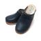 Sabots bois femme suédois et cuir lisse cuir bleu marine