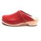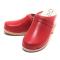 Sabots pour femme suédois bois et cuir tannage végétal cuir rouge écarlate