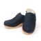 Sabots bois femme suédois et cuir lisse cuir bleu marine