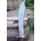 Sabre d'Abordage Pirate Lame Damas 512 Couches Manche Bois Fleur Laiton Garde Etui Cuir F Artisanale