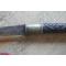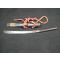 La lame est enchassée dans un fourreau en bois cerclé d'un tressage en fibre végétale, associé au cordon de tissage rouge destiné à le fixer à la ceinture de le personne qui le porte.