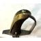 Poignée avec croisière et arc de jointure en fer, calotte en bronze. Poignée bois ayant perdu son cuir. Petites fentes de chaque côté du bois.