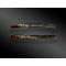Acier, argent, bois, or, laque