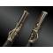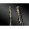 Tsuka en bois, recouvert de feuilles rouge constellés d’or sur fond de laque noir. Mékugi à vis, en argent ciselé en forme de fleur de prunier. Un décor en argent, formant fushi et kashira, finement ciselé, pour représenter des fleurs de prunier à cœurs d’or et branchages.
