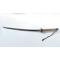 Le fourreau possède des anneaux métalliques, la lame est en acier forgé.