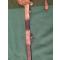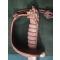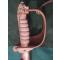 Sabre de Marine Portuguese Republique an 50.Garde Bronze dorée, poignée avec peau de poisson avec filigrane, á la garde un branch, una aincre.Á la arriére un boutton de fixation.Lâme gravée á acid a un tier.Fourreau cuir noir avec garnitures latin et deux aneaux de suspension.Avec sa Dragonne. Bon état.