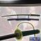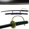 Sa lame en acier inoxydable 440 non tranchante est accompagnée d'une garde en acier et bois, et d'un manche recouvert d'un tressage vert, rappelant l'univers de "One Piece".