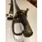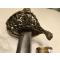 Bonne monture bronze à longue queue avec 13 coquille St Jacques. Garde à décor ciselé à jour avec ancre de marine encordée surmontée d'une couronne impériale le tout sur entrelas de feuille d'eau. Calotte convexe ciselée de cotes radiantes. Arc de jointure encordée munis d'un oeillet pour passer la dragonne. Quillon à tête de dauphin. Dorure encore visible sur la garde. Bonne fusée de corne, sans filigrane.