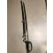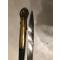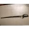 Lame de 74 cm avec marquage trés peu lisible " Manuf de Klingenthal". 2 poinçons au talon de la lame. Poinçon du fourbisseur "E.L" surmonté de trois étoiles sur la garde. Fourreau cuir avec patine à trois garnitures laiton et deux anneaux sur bracelet. Dard orné de 5 feuilles trilobées. Ancre encordée surmontée de la couronne impériale sur la chappe. Petit bouton de chappe décoré. Longueur 92 cm. En service sous le Second Empire.