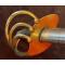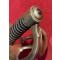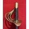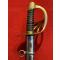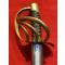Monture en laiton modèle An XIII, à quatre branches de garde boulées. Calotte courte, découpée en accolade et surmontée d'un bouton de rivure. Fusée en bois gainée de cuir avec filigrane et virole en laiton.
