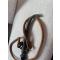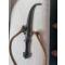 Sabre ancien iincurvé, origine Bosphore (?), lame métal (rouillée), fourreau métal ciselé 26 cms, poignée bois laqué noir avec décor métal 14 cms, 2 anneaux poucr cordelière tressée 1 mètre couleur rousse