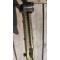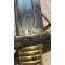 La poignée en laiton moulé est munie de quinze rainures, elle intègre un mécanisme de verrouillage avec bouton-poussoir avec lame ressort en acier fixée par un rivet.