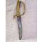 Sabre briquet qui a été transformé en poignard, peut-être suite à une rupture de lame, (je ne connais pas la raison). Garde en laiton dans sa patine, poignée à 28 torons. Longueur totale de l'arme 38 cm, longueur de la lame 24 cm, usagée et épointée, large de 32 mm. La lame est oxidée, et elle bouge dans la poignée. Objet particulier vendu en l'état.