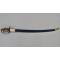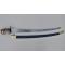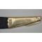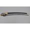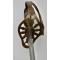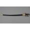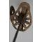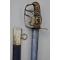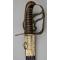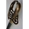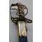 Sabre d’infanterie dit " petit montmorency ou de mineur " époque Louis XVI. Belle monture en laiton avec une fusée en bois recouverte de basane et un filigrane avec deux fils torsadés jaunes entourant une bande de cuivre. Calotte à longue queue, plateau de garde découpé en soleil avec des rayons finement travaillés. Garde à 4 branches dont trois secondaires, ornée d’une fleur de lys ajourée. Lame blanche demi courbe à deux pans creux et deux gouttières près du dos, de 720 mm de longueur, largeur au talon : 35 mm, épaisseur : 8 mm., flèche 20 mm. Bon fourreau d'époque en cuir de vache sans alèses à deux garnitures en laiton, coupées en accolade, avec une chape à piton et anneau de bélière, et une bouterolle terminée par un petit dard de même métal. longueur totale 850 mm. Très bon état et complet.