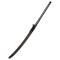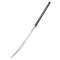 La poignée de 58,4 cm est recouverte de véritable peau de raie et d'un enroulement en cordon de soie noire, garantissant une excellente adhérence et un contrôle optimal lors des mouvements amples. Les menuki en laiton renforcent l'ergonomie et l'authenticité de l'ensemble. Le fourreau en bois laqué noir protège la lame tout en conservant une présentation élégante et traditionnelle.