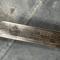 Patine ancienne sur la monture, lame avec gravures visibles malgré une légère oxydation.