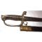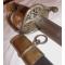 Sabre d'Officier d'Infanterie, modèle 1845 première version fourreau cuir pendant la fin du second Empire. Garde à une branche et coquille ajourée de motifs floraux en laiton ciselé, fusée avec filigrane, calotte à courte queue.. Lame courbe non oxydée à deux pan creux longueur 76,5cm, on distingue le marquage Manuf Royale de TULLE . Fourreau en cuir en bel état, coutures d'origine, à trois garnitures en laiton et deux anneaux. Matricule 148 sur la garde, même matricule 148 sur fourreau. A noter que la poignée a du jeu. Beau sabre dans son jus.