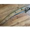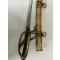 Sabre, d'officier, d'artillerie à cheval, premier empire montures à la chasseur, poignée bois, recouverte de Cuir, avec quelques manque lame d'une longueur de 82 cm avec gravure en bon état, fourreau entièrement à en laiton avec deux large bracelet au canons croisés. Beau Sabre dans son état d'usage .à nettoyer.