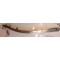 Lame courbe à un pan creux et large contre-tranchant saillant à la pointe, décor bleu et or subsistant à 30 % avec trophées d’armes gravés, marquage J . S . & C au talon pour Johan Schimelbusch et Compagnie à Soligen (1800 – 1801 Consulat), tache d’oxydation par endroits voire les photos qui font partie du descriptif.