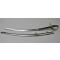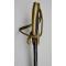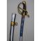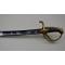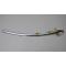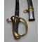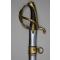 Sabre « à la chasseur » d’officier de cavalerie légère modèle an XI. 1er empire. Monture bronze trois branches et oreillon central et long quillon décoré au trait. Poignée cuir filigranée. Lame à deux pans creux, de forme courbe, dorée et bleuie sur son premier tiers, gravée de trophées militaires et floraux, dos plat. La dorure est partiellement manquante sur la lame. Longueur 86 cm, largeur au talon 3,3 cm. Fourreau fer à deux larges anneaux laiton à fort piton. Cuvette laiton, dard fer. Longueur totale: 104 cm. sabre en très bon état.
