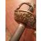 Bonne garde laiton décorée, fusée celluloïd avec triple filigrane d origine,bon matage, cravate cuir présente,lame de 85cm sans marquage particulier, fourreau à un anneau avec coups à la base.