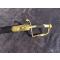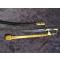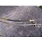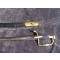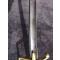 Sabre d’officier d’infanterie vers 1800. Monture en laiton et ébène. Pommeau octogonal et fusée en ébène quadrillé. Arc de jointure à deux perles, oreillon en amande et quillon en forme d’enroulement. Lame courbe de Solingen avec gravures bleu et or encore bien concervées ( voir photos) aucun jeu . infime petits manque légère cotosion sur la lame (voir photos) Fourreau en cuir à deux garnitures laiton. France, Époque Consulat.