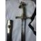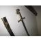 Lame de 75 cm large au talon de 3,2 cm et flèche de 4,5 cm à dos plat et pan creux; poignée de 15 cm