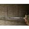 Sur une longueur de 27,5cm la lame est bleutée à décors dorés.