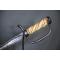 Lame à faible courbure, simple tranchant et gouttière prononcée.