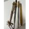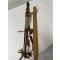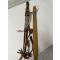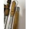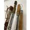 Vends 2 sabres-Coutelas africains, origine Mali, région de Djenné. Le premier a un fourreau en cuir artistiquement tressé. La longueur de la lame est de 39 cm et la longueur totale est de 56 cm. Le second a un fourreau et un manche en bois. La longueur totale est de 50 cm