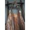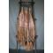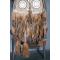 Da la base du sac pendent de nombreuses franges et bandes en cuir.