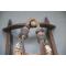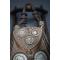 La poignée est faire d'une sangle de cuir tressé retenue par des gros boutons en cuir tressé. La sangle se divise en 3, se terminant par des franges et bandes de cuir.