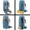 Passons maintenant en revue les caractéristiques spécifiques du sac à dos Aircontact Core 50+10. Il comprend une poche à fermeture éclair au niveau du rabat, un compartiment principal accessible facilement par le haut, par le bas ou par l'avant, ainsi qu'une grande poche à fermeture éclair en dessous (on peut y ranger par exemple un sac de couchage). Deux petites poches avec fermeture éclair sont situées sur la ceinture lombaire, et deux poches élastiques se trouvent sur les côtés du sac à dos, en plus d'un compartiment accessible en façade. Le tissu utilisé (235D REC PA Plain Bluesign) est sélectionné pour sa résistance et est certifié Bluesign, assurant ainsi la durabilité du sac à dos Aircontact Core Deuter 50+10. Son dos est réglable en longueur de 42 à 62 cm, offrant une grande adaptabilité à différents gabarits (idéal pour les tailles de 170 à 205 cm).