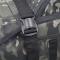 Sangle de 2 pouces avec des mousquetons en plastique et un coussinet qui se fixe avec des sangles velcro. Il y a des anneaux en D à chaque coin du sac pour un total de 4 pour vous permettre d'être créatif avec la connexion de la bandoulière.