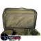 La grande poche latérale s'ouvre en forme de U sur trois côtés. Cela ouvre un rabat latéral rabattable qui repose à plat sur le sol, offrant un poste de travail d'une surface utilisable de 40 x 25 centimètres.