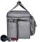 A gauche : un compartiment isotherme pour bouteilles Ø9,5 cm et une grande poche zippée avec de multiples élastiques.
