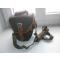 Toile kaki et cuir gold. Fermeture rabat à glissière + 2 boucles. Poignée en cuir.