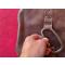 Sacoche en cuir pour cartouches ou autres, avec deux poches , la boucle en laiton est cassée sur un côté, mais ne gênant en rien concernant la solidité, quelques rayures, autrement en bon état, les dimensions sont les suivantes, longueur en partant du bas : 27cm, hauteur : 27 cm, profondeur de la poche principale : 23 cm et profondeur de la petite : 19 cm, sacoche assez originale style cavalerie, pas de prix de réserve.