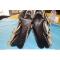 Taillées dans une peau de vache.Les boucles en forme de fer à cheval sont en laiton massif.