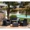 Cet ensemble de jardin en imitation rotin tressé combine le style et la fonctionnalité et va devenir le point central de votre jardin ou patio. Il est composé d’un canapé deux places, de deux fauteuils et d’une table basse avec range coussins vous permettra d’accueillir agréablement vos amis pour un moment de détente. Grâce à sa structure en résine, il est facile d’entretien et ne rouille pas. Ses coussins déhoussables et ses dossiers ergonomiques le rendent très confortable. Le soir, rien de plus simple, il suffit juste de ranger les coussins à l’intérieur de la table. Il est garanti 2 ans et répond aux normes européennes.