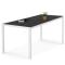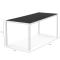 Composé d'un plateau de table en verre trempe gris anthracite et d'une structure blanche.